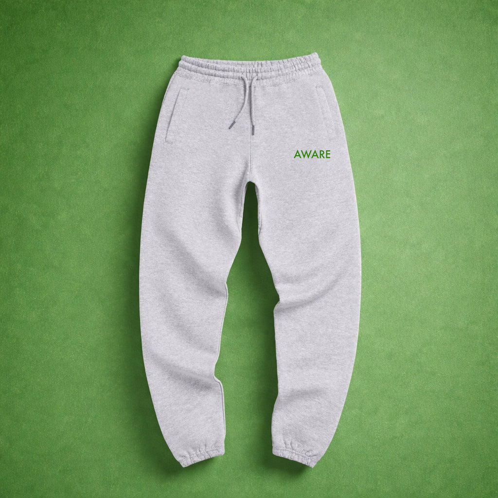 The green color reflects renewal, balance, and hope — a reminder that healing is not linear and every step forward matters. Rooted in the AWARE mission — A Way to Advocate and Represent Every day — these sweatpants exist to raise awareness, break stigma, and encourage open conversations around mental health and emotional well-being.