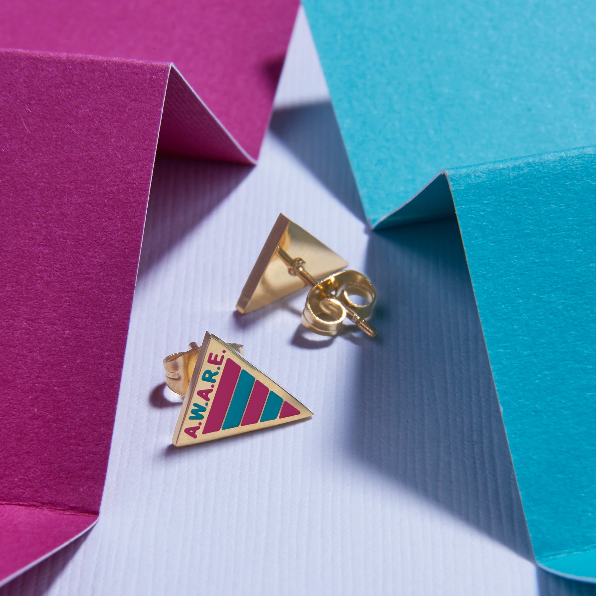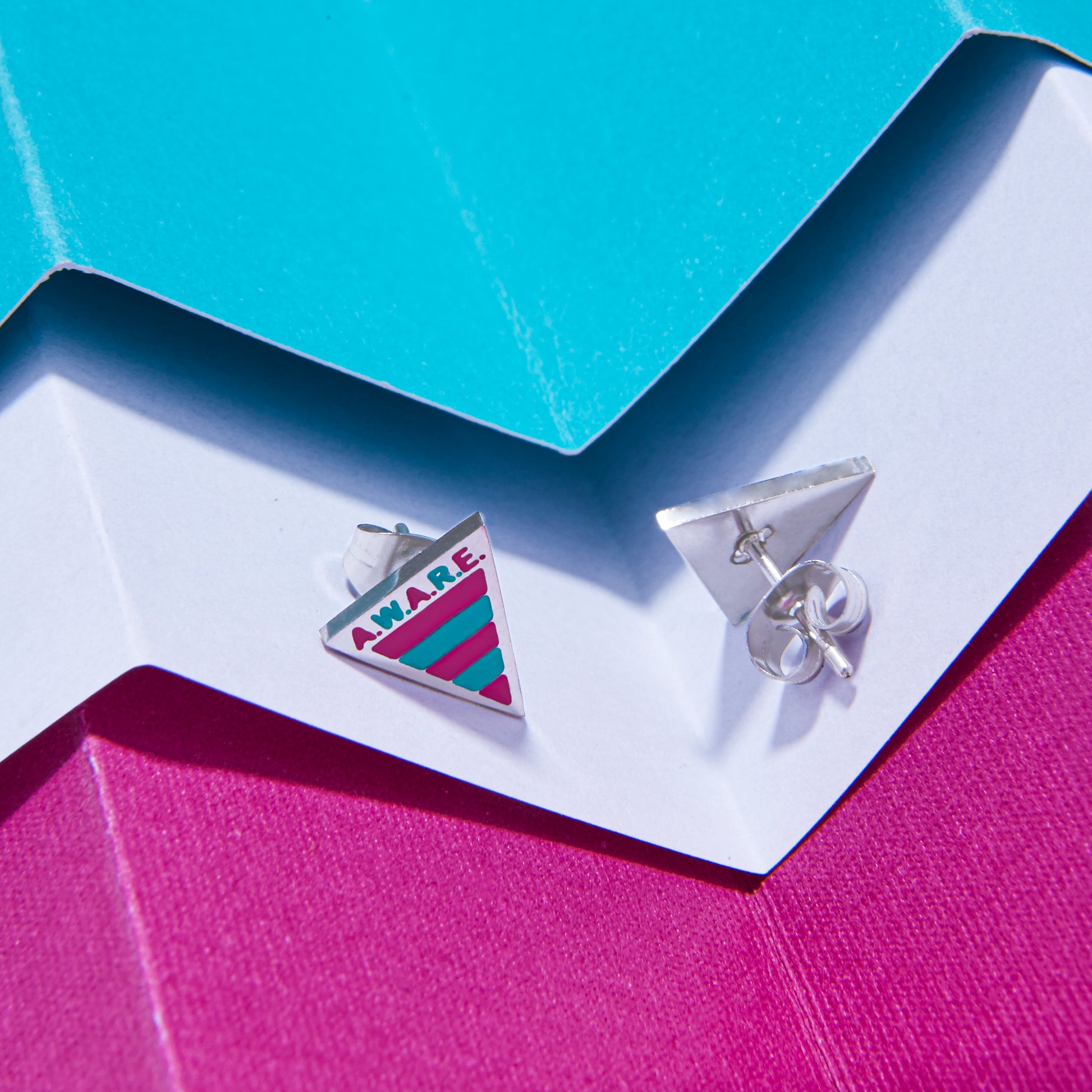 The Pink and Teal Awareness Earrings are more than just a beautiful accessory—they are a meaningful emblem of strength, education, awareness, and support for mental health and the important causes they represent. The triangle shape symbolizes resilience, stability, and the courage to overcome life’s challenges. Paired with the inspiring AWARE logo, these earrings stand for a mission to spread knowledge, break stigma, and encourage compassion for those impacted by deeply personal and often life-changing experiences.