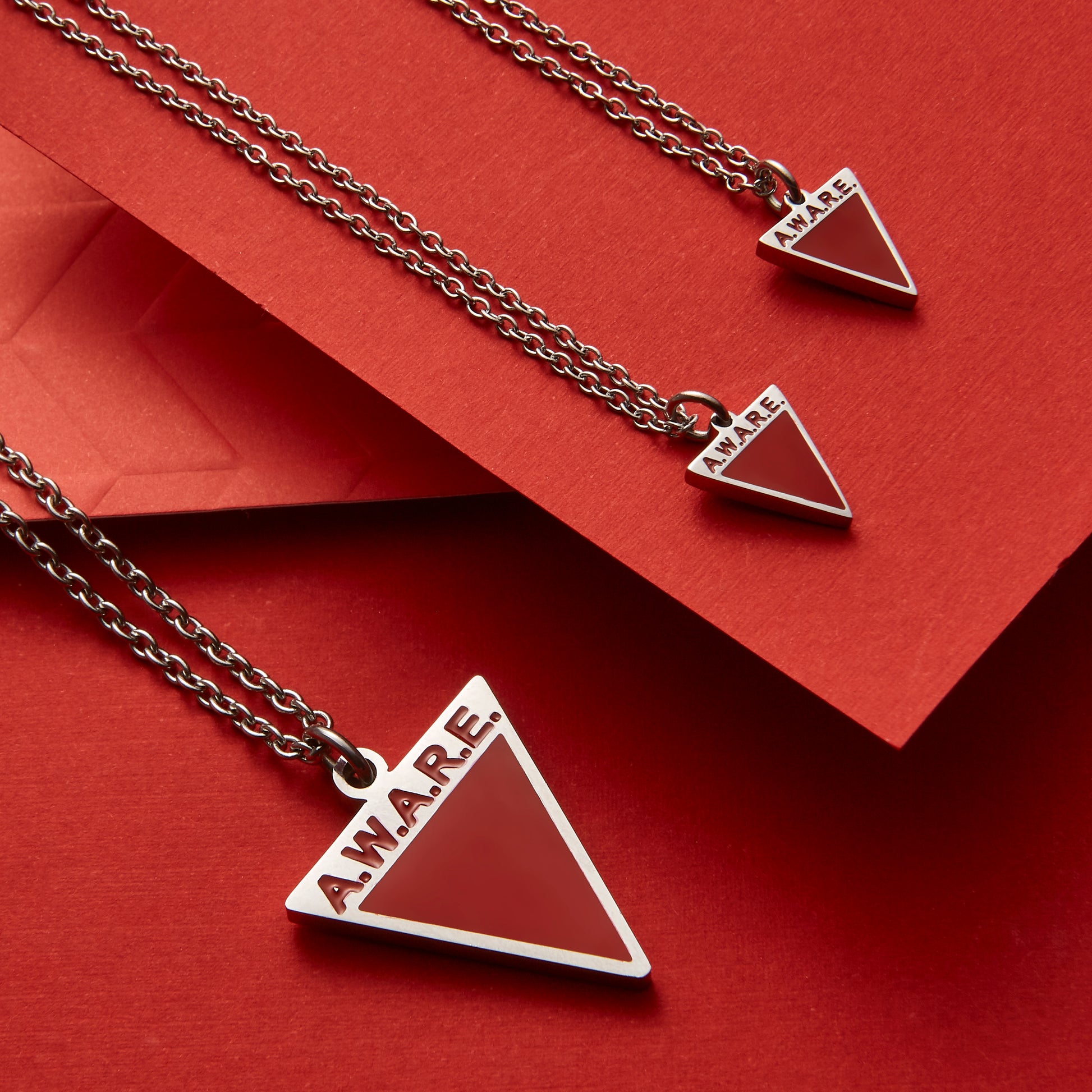 Embrace your inner fire with the Red AWARE Triangle Necklace, a bold symbol of strength, courage, and passion.
