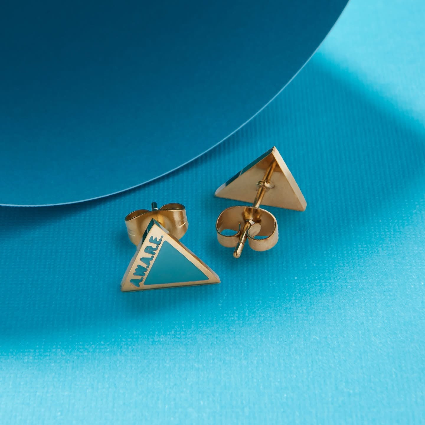 The Teal Triangle Awareness Earrings are a bold yet elegant way to wear your support and raise awareness every day. The triangle is a universal symbol of strength, resilience, and balance, reminding us to stand strong in the face of challenges. Each pair features the AWARE logo, representing a commitment to awareness, education, and support for the causes that matter most.