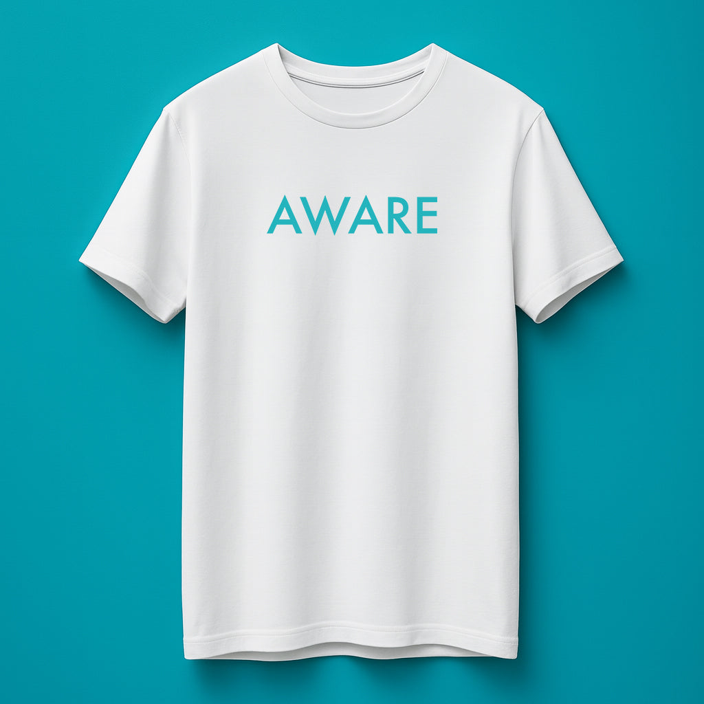 The AWARE Teal Shirt is a symbol of calm, courage, and healing. Created to advocate for those living with anxiety and PTSD, this shirt represents the strength it takes to face each day and the hope that grows with every step forward.